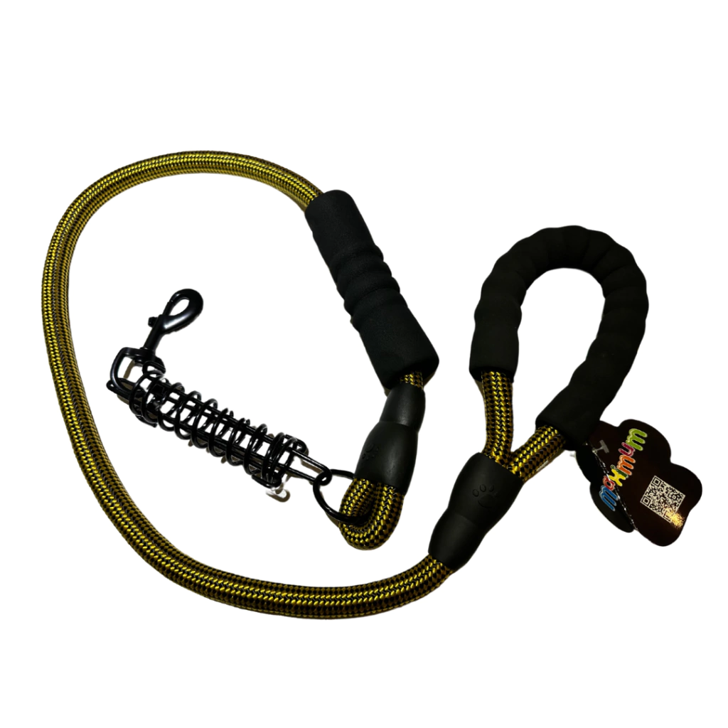 A Guia de Mola tem como função conduzir aqueles pets, de médio ou grande porte, que gostam de correr durante o passeio. A mola amortecedora vai absorver o impacto na hora da puxada, aliviando a tensão no pulso e ombro de quem estiver conduzindo. Pode prender tanto na coleira quanto no peitoral.