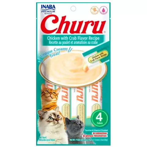 Ingredientes: água, frango, amido de mandioca, aromas naturais, aroma natural de caranguejo, goma guar, taurina, vitamina E, extrato de chá verde.