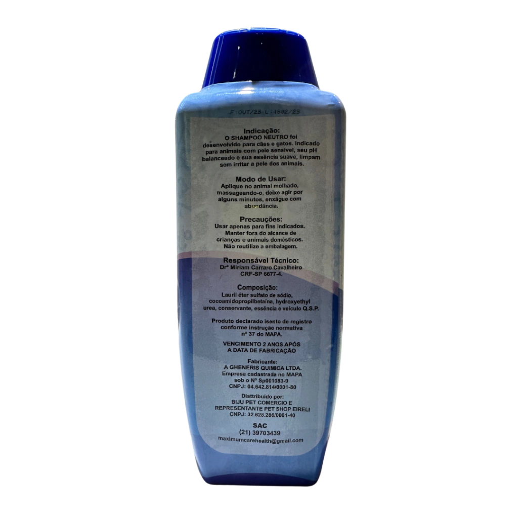 O Shampoo Neutro 2 em 1 foi desenvolvido para cães e gatos. Indicado para animais com pele sensível, com pH balanceado e essência suave. Limpa sem irritar a pele.