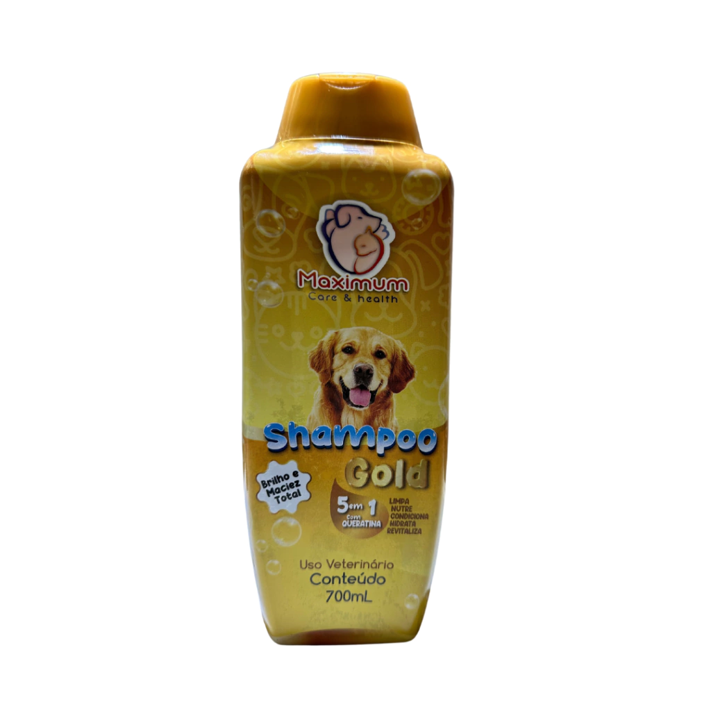 O Shampoo 5 em 1 Gold foi desenvolvido para cães e gatos. Indicado para animais de pelo curto. Sua composição de shampoo mais condicionador deixa o pelo limpo e brilhoso. Dispensa o uso de condicionador.